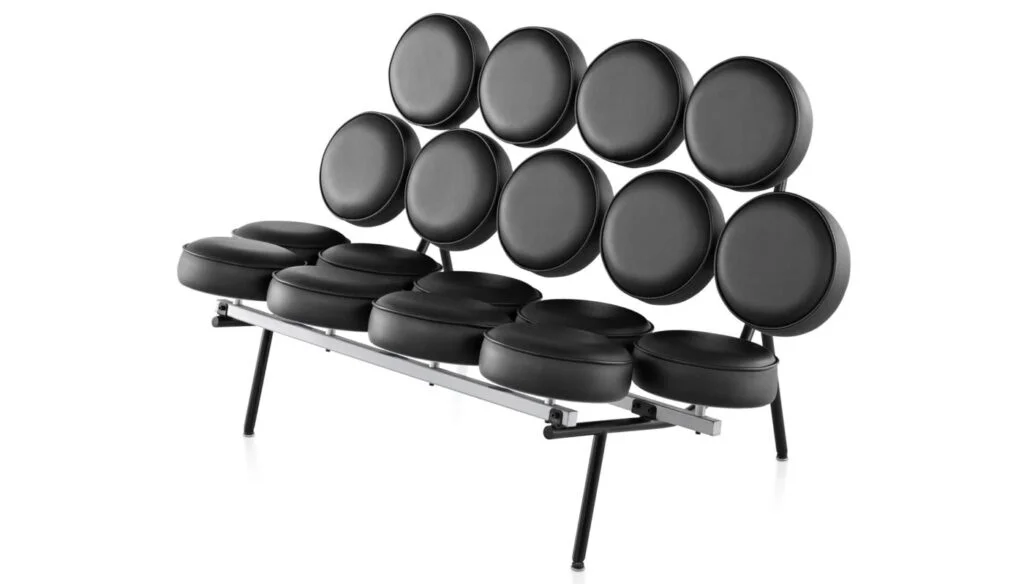 You can’t help but smile when you see the George Nelson Marshmallow Sofa. Its 18 atom-like cushions seemingly float above its tubular steel frame in the act of whimsy and Pop Art. Even so, this iconic mid-century modern sofa is comfortable, durable, and – yes – practical: The cushions detach for easy cleaning and interchangeable for ensuring even wear across all cushions.
